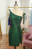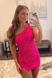 Glitter Orange One Shoulder Beaded Tight Homecoming Dress