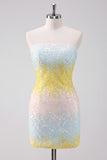 Glitter Strapless Tight Homecoming Dress With Sequins