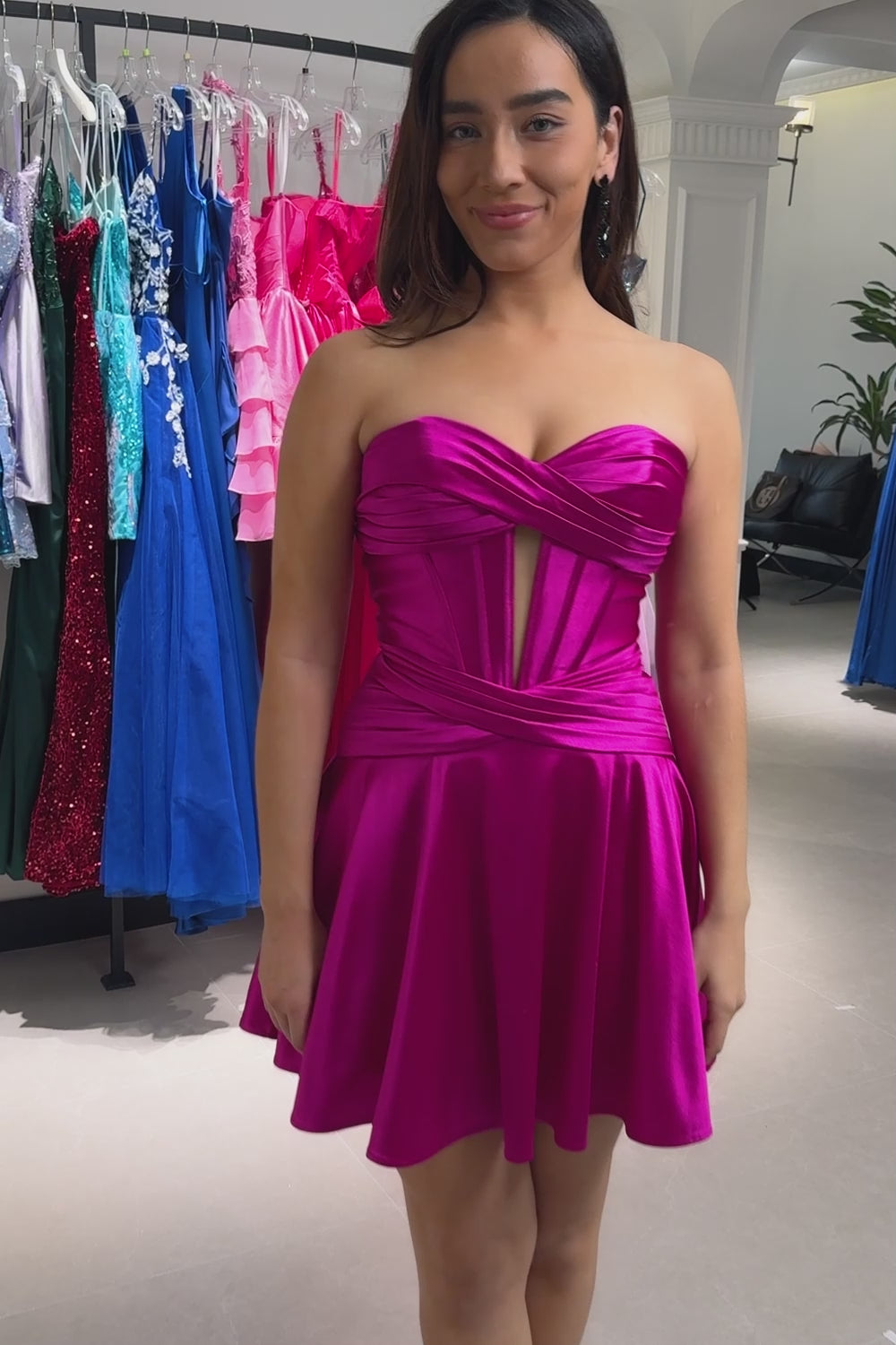 Sparkly Hot Pink A Line Corset Pleated Homecoming Dress