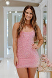 Sparkly Sequins Light Pink Bodycon Spaghetti Straps Homecoming Dress